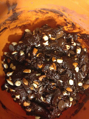 I woke up at 5am and decided to bake theses cookies. They call for vegan white chocolate, vegan chocolate chips and almonds. No marshmallows. The almonds give it the crunch I wanted.